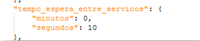 O objeto tempo_espera_entre_servicos representa o intervalo de tempo de espera entre a execução de uma ação nos serviço selecionados.