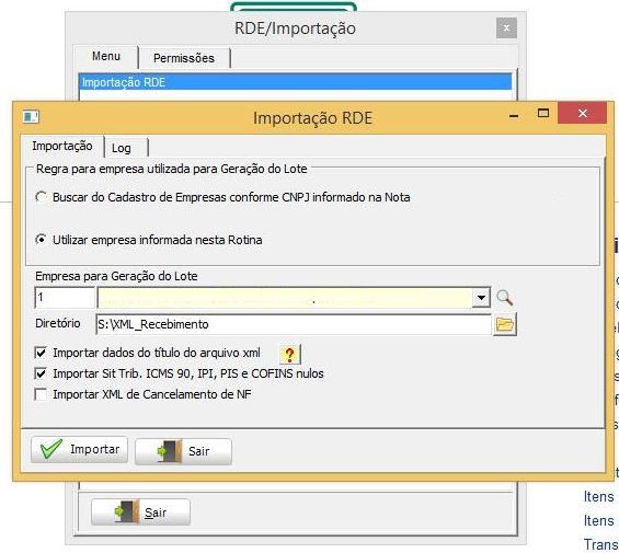 - Diretório: informe o diretório importação, se não informado o campo nesta tela o sistema irá buscar o diretório configurado no CFG e se não informado o campo no CFG, o sistema irá buscar o diretório configurado para a empresa informada em tela no cadastro da empresa