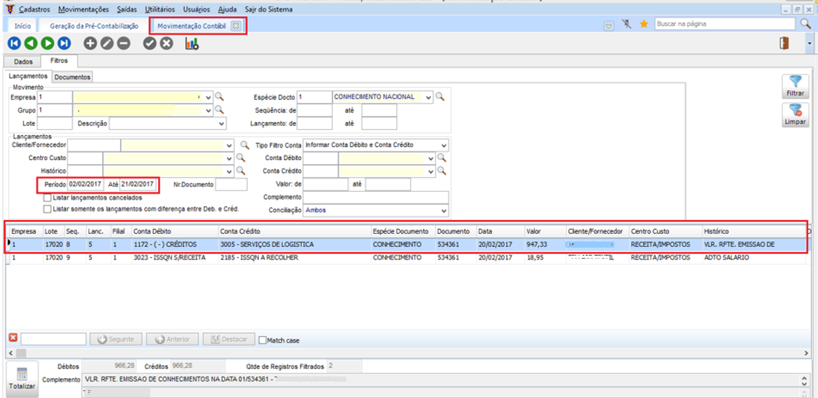 No módulo CTB em Movimentações > Contabilidade > Movimentação Contábil, deve ser verificado a movimentação lançada para o conhecimento.