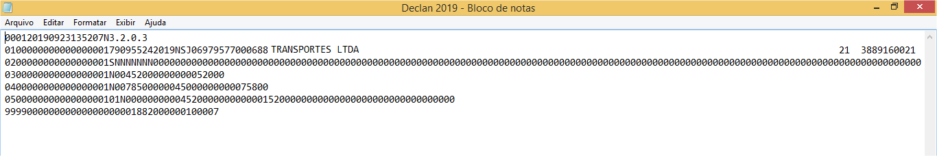 Após informar todas as informações nas guias, basta gerar o arquivo do DECLAN, que gerará um arquivo com extensão .txt.