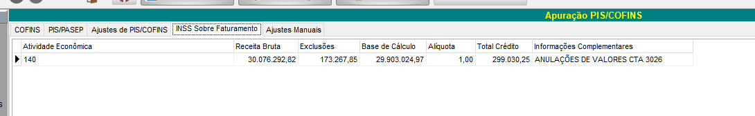- CPRB: para a guia CPRB será buscado e detalhado por documento o valor já calculado na guia Apuração/INSS Sobre Faturamento da rotina CTB > Movimentações > Escrituração Fiscal > Apuração de PIS/COFINS.