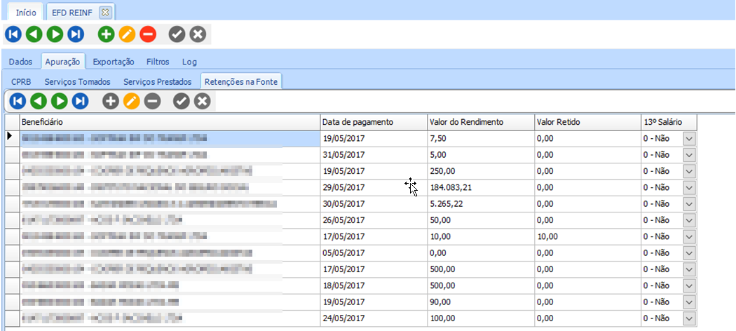Acessar a tela de EFD Reinf e clique no botão Gerar Apuração, o sistema irá buscar as seguintes informações para cada subguia da guia Apuração: