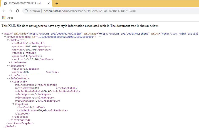 Após gerado no xml, é apresentado as informações conforme apuração, no XML essas informações serão divididas por atividade: