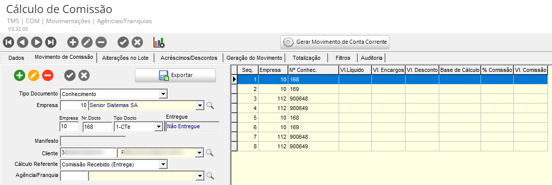 Ao final do processo, acesse a rotina no módulo COM > Movimentações > Agências/Franquias > Cálculo de Comissão.