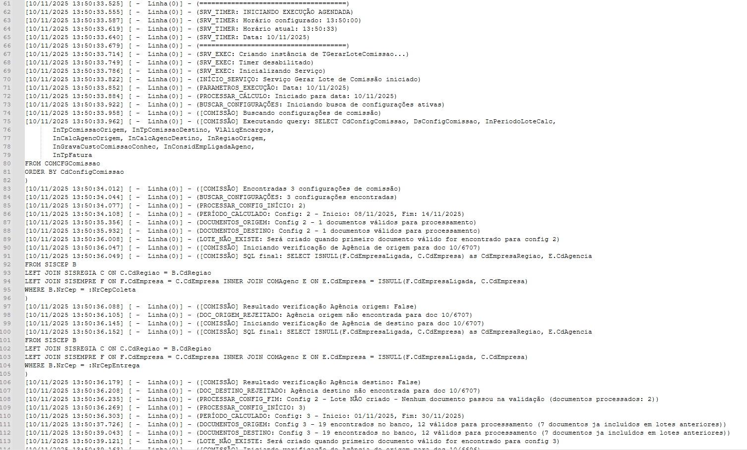 - Atualize o SRVGERARLOTECOMISSAO.exe para a versão 3.33.01 ou superior.