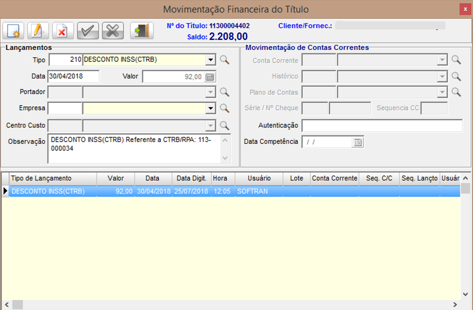 - Título de saldo com movimentação financeira neste caso de desconto de INSS