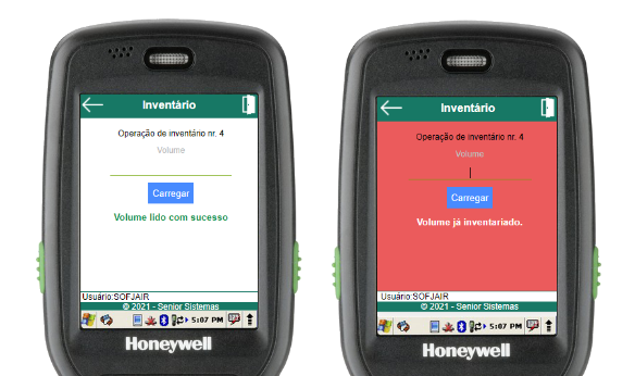 Ao inventariar itens, o usuário será informado do sucesso da operação, ou caso contrário, será exibida uma mensagem de erro indicando o ocorrido.