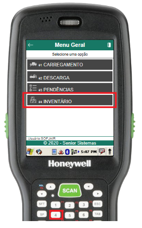 A rotina de inventário pode ser acessada no coletor através de Menu Geral > Inventário: