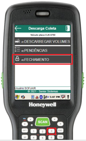 Ao não existirem mais pendências, o usuário poderá executar a rotina de fechamento de descarga da entrega através do item 3 do menu de descarga de coleta.