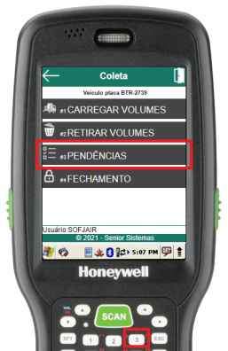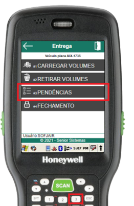 Para conferir os volumes pendentes em uma gaiola, deve-se acessar a rotina de pendências através do item 3 do menu de carregamento da gaiola.