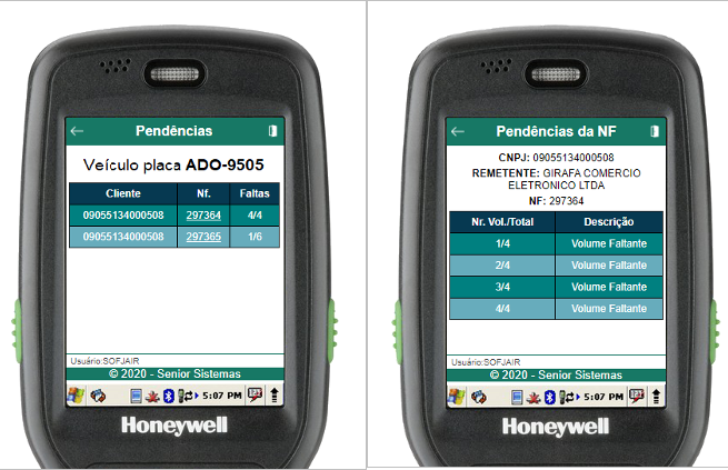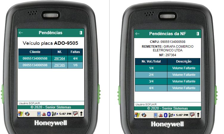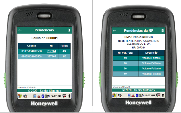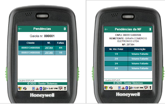 Dentro da rotina de pendências, serão listadas todas as NFs pendentes da descarga da gaiola. Para um detalhamento completo dos itens de uma NF pendente, basta clicar na linha da NF a qual se deseja mais detalhes.