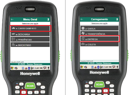 A rotina de carregamento de entrega pode ser acessada no coletor através de Menu Geral > Carregamento > Entrega