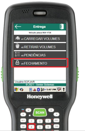 Ao não existirem mais pendências, o usuário poderá executar a rotina de fechamento do carregamento da entrega através do item 4 do menu “Carregamento de Entrega”.