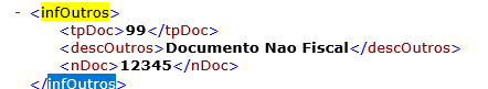 Na opção Outros ficará registrado a informação deste documento não fiscal, na tela da emissão do conhecimento: