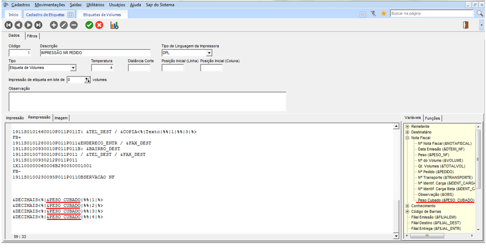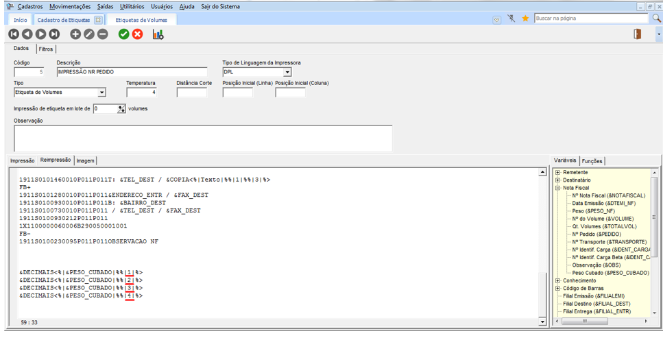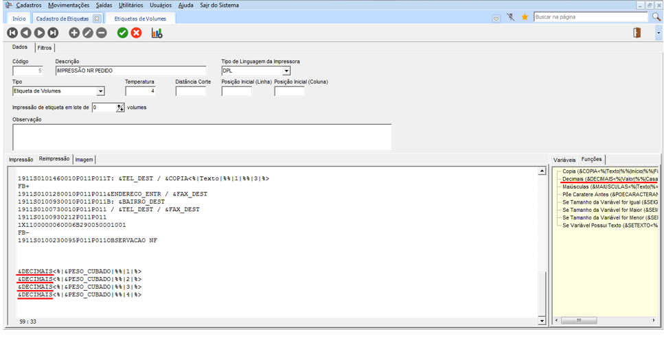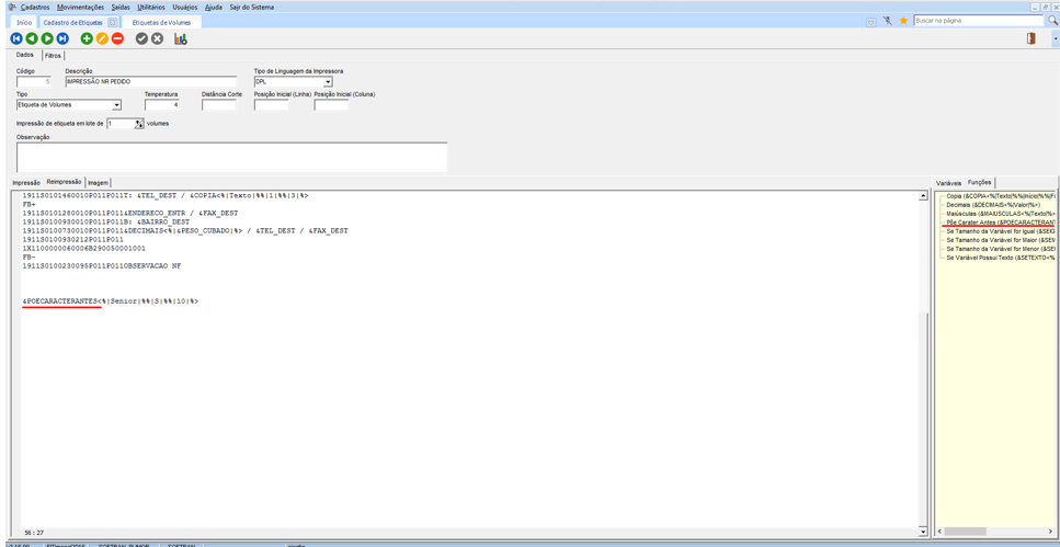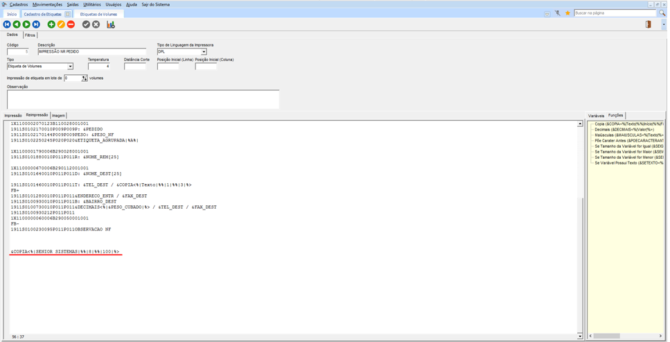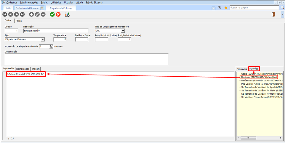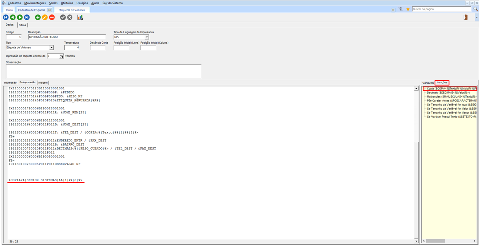 Impressão de Variáveis ou Funções nas Etiquetas