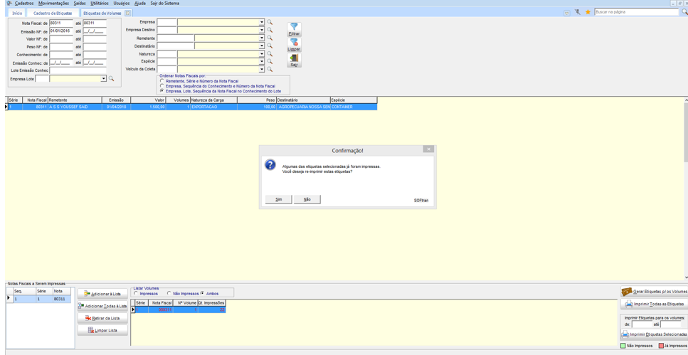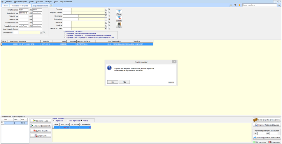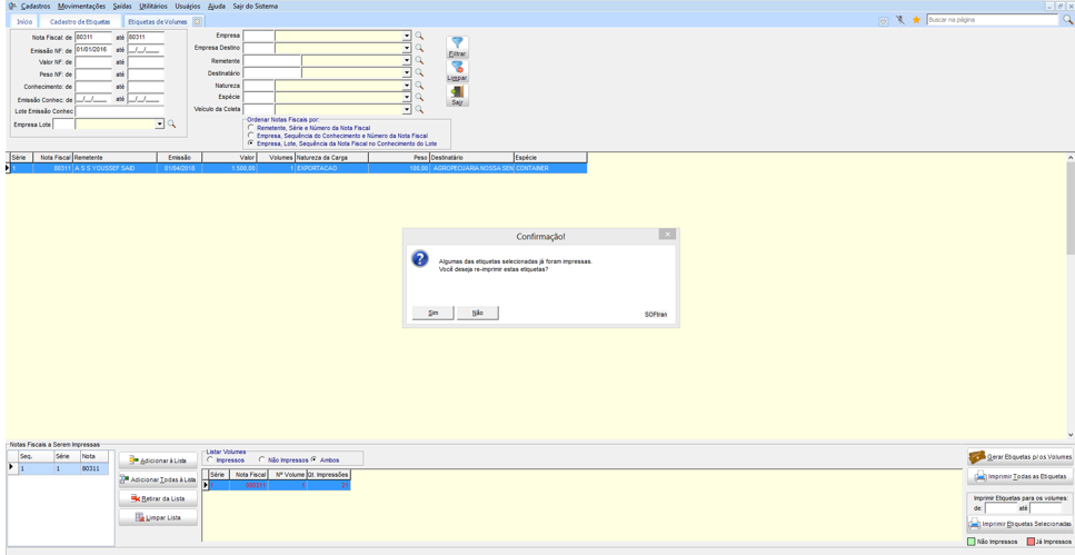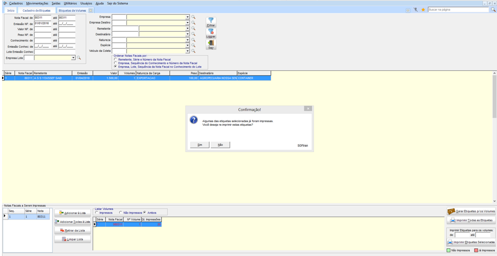 Em Movimentações > Etiquetas > Etiquetas de Volumes