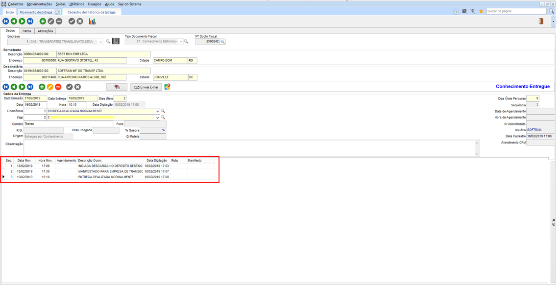 Na tela de Movimento de Entrega, finalizada a entrega do conhecimento.