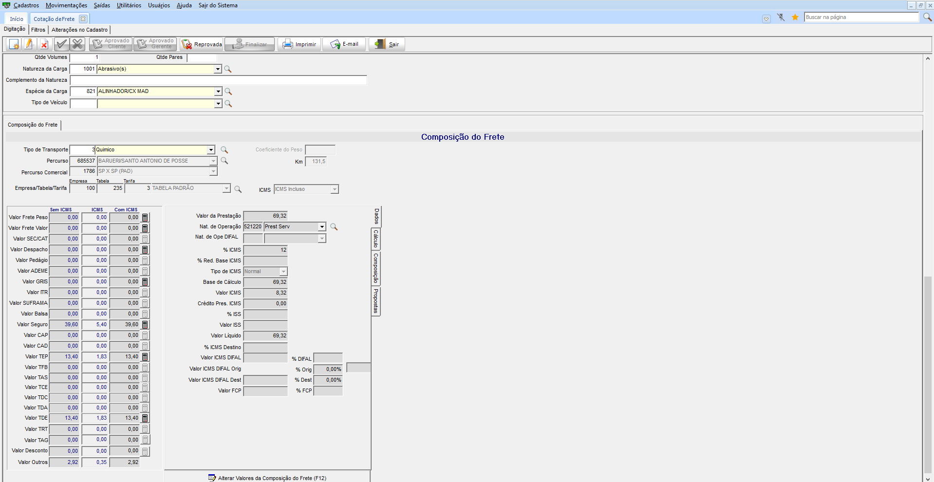 É necessário ter uma cotação de frete cadastrada, para posteriormente gerar a emissão do conhecimento para o tipo cotação de frete.