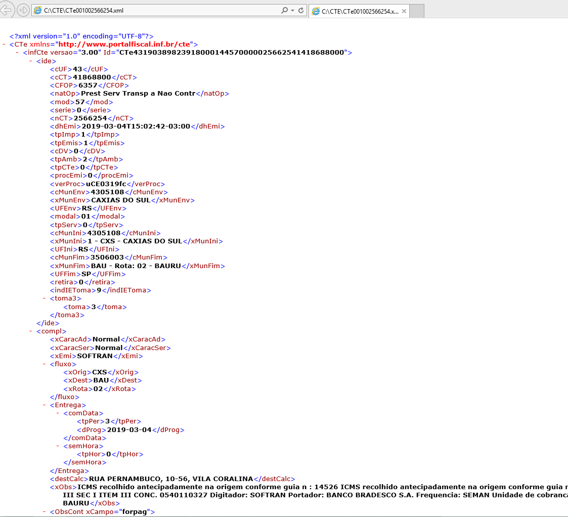 - O campo Remetente apresentará a inscrição estadual do remetente;