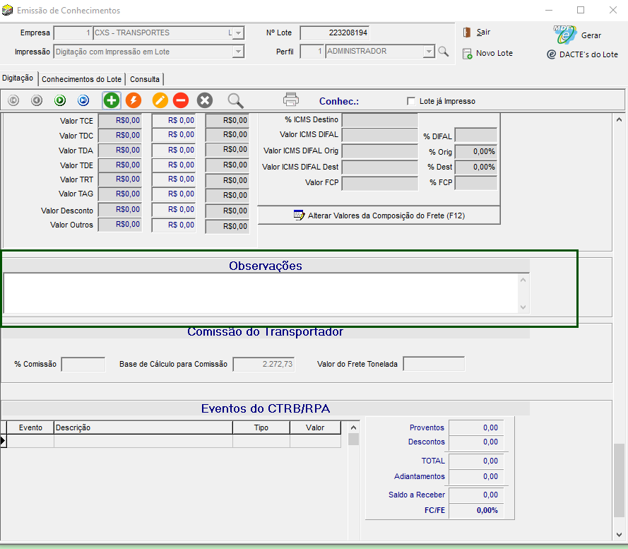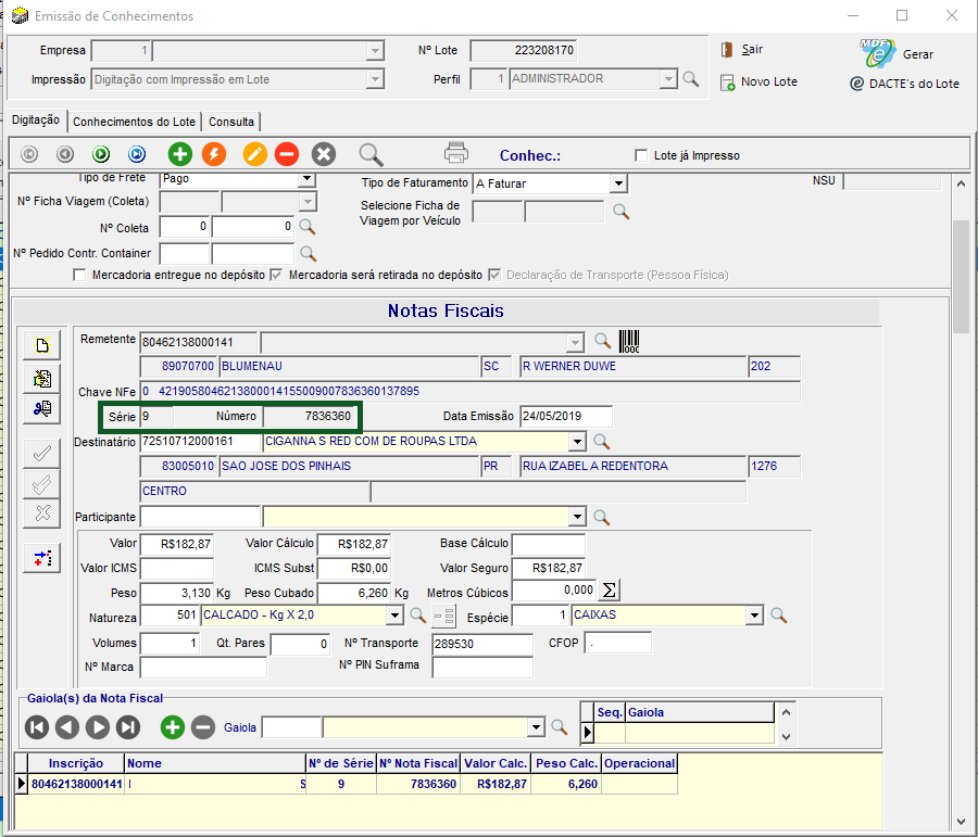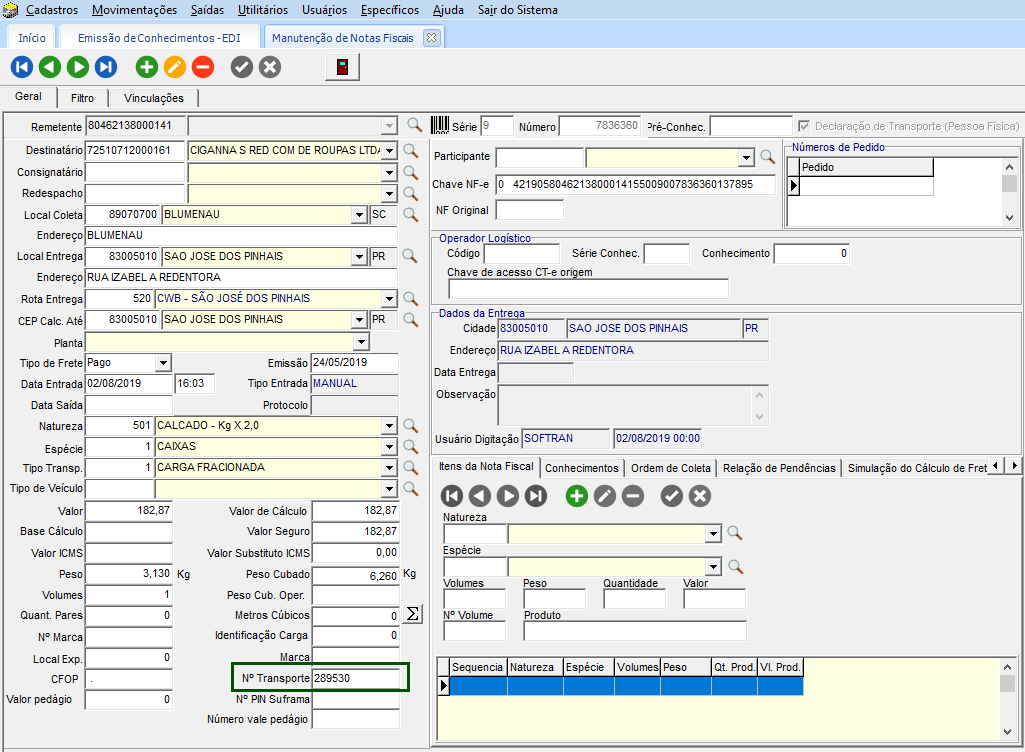 Desta forma, o número do transporte da nota fiscal esteja visível no campo Observação do conhecimento.