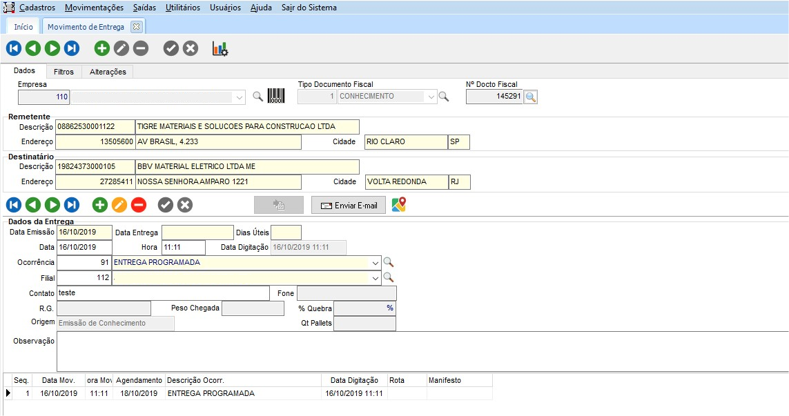 Ao emitir um CT-e serão gerados Movimentos de Entrega de maneira automática com base nas configurações disponíveis no sistema.