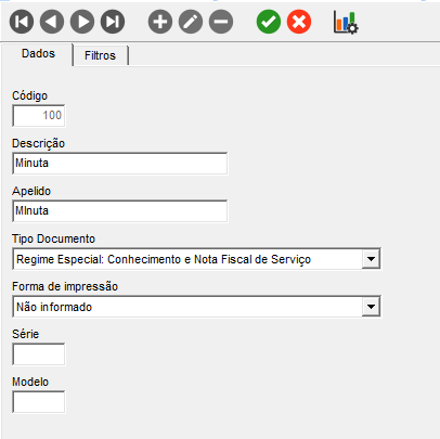 Quando o usuário tiver permissão para adicionar documentos não fiscais, na tela de Manutenção de Notas Fiscais será apresentada a mesma informação. Para as notas que foram geradas pela tela da emissão do conhecimento, com esta opção marcada e não permite alteração, quando tem conhecimento vinculado.