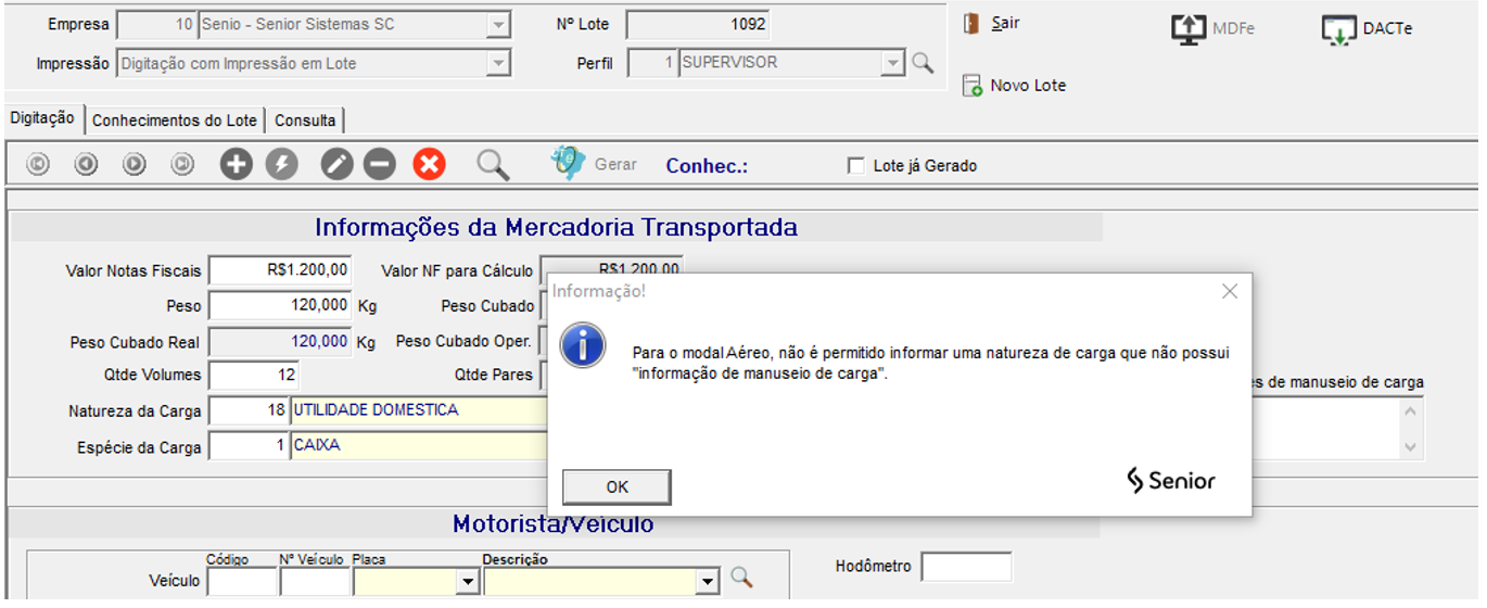 - Ao imprimir o CTe, antes de gerar o XML, verificar as inconsistências referente as informações de Manuseio de Cargas e não permitir imprimir o lote.