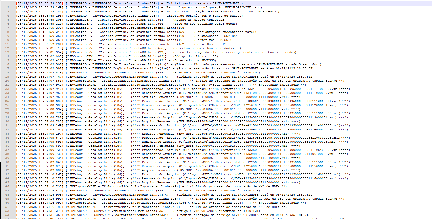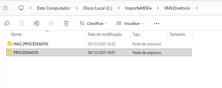 - Após iniciado, o sistema verifica os XMLs no diretório configurado.