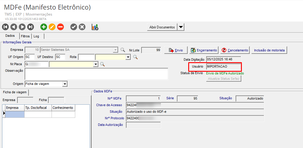Para a correta funcionalidade da rotina, atualize o SRVImportaMDFe.exe para a versão 3.33.01 ou superior.