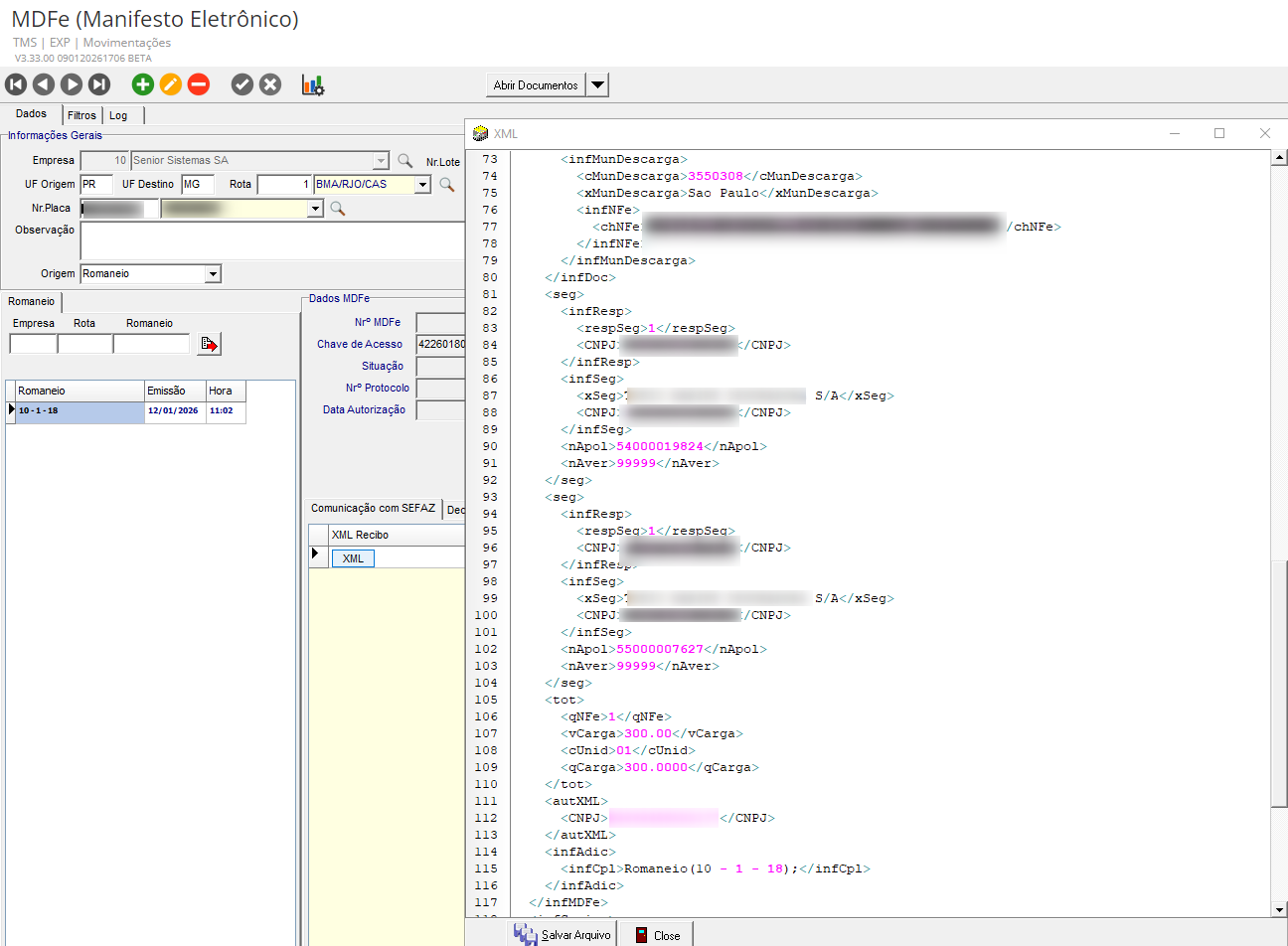 Configuração de MDF-e para envio de NF-e ou CT-e