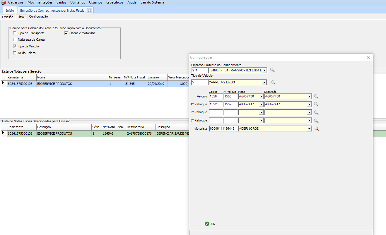 Outro detalhe, é quando a vinculação será preenchida o tipo de transporte, quando os dados da emissão do conhecimento estiverem 100% de acordo com o cadastro da vinculação quando esta for mais específica. Para os cadastros de uma forma mais “genérica”, o sistema verifica os dados que estão mais semelhantes da vinculação com os documentos.