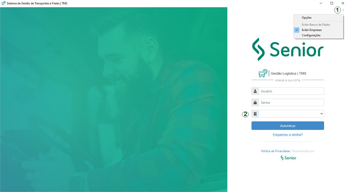 Se o usuário optar por não exibir a empresa, será realizado o login para a empresa padrão, selecionada nas configurações do tenant. Para acesso, clique no botão Autenticar.
