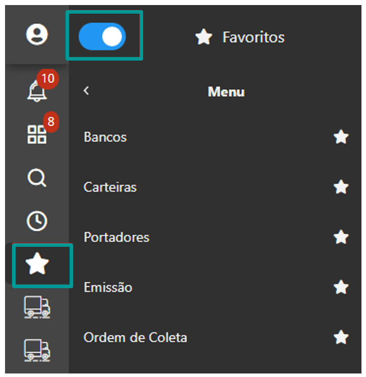 preenchido, estas estarão disponíveis no menu lateral em Favoritos:
