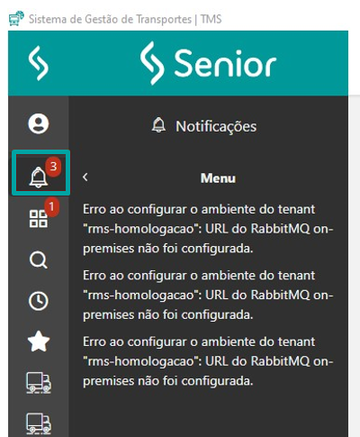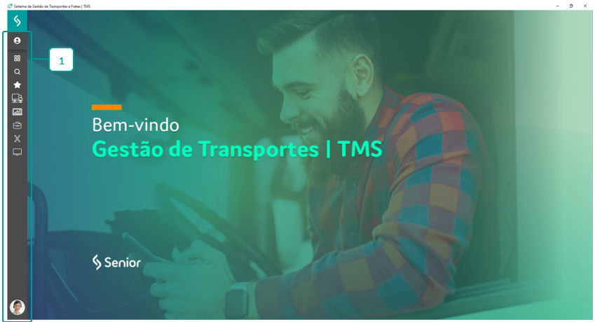 As rotinas de acesso aos produtos TMS estão disponíveis para acesso através da Barra Lateral (1) do menu principal, clicando no ícone relativo à Gestão Logística (2). Através deste menu, acesse a opção Gestão de Transporte. O menu irá disponibilizar todos os módulos e opções que o usuário logado tem acesso (3).