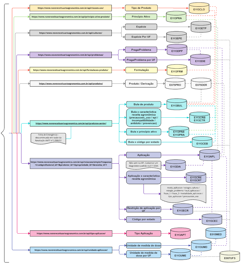 Na imagem abaixo, o usuário poderá conferir a relação de API's utilizadas na Integração com o NovoReceituário e seus relacionamentos com as tabelas do ERP Senior.