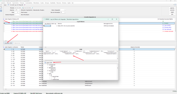 O usuário poderá utilizar a tela F113CLI para visualizar todas as chamadas de API realizadas para a integração, além de consultar o log dos cadastros e a relação do que foi recebido com o que foi cadastrado nas tabelas do ERP Senior, também poderá consultar a situação da requisição e visualizar qualquer mensagem recebida.