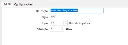 - No campo Tipo, selecione "18-Hub de Royalties";