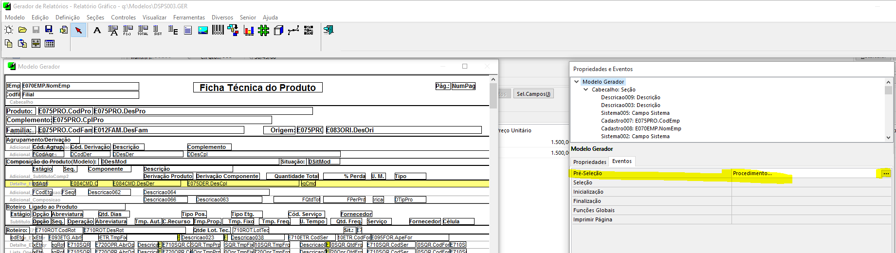 - Edite o evento Pré-seleção no Modelo Gerador, conforme imagem de exemplo: