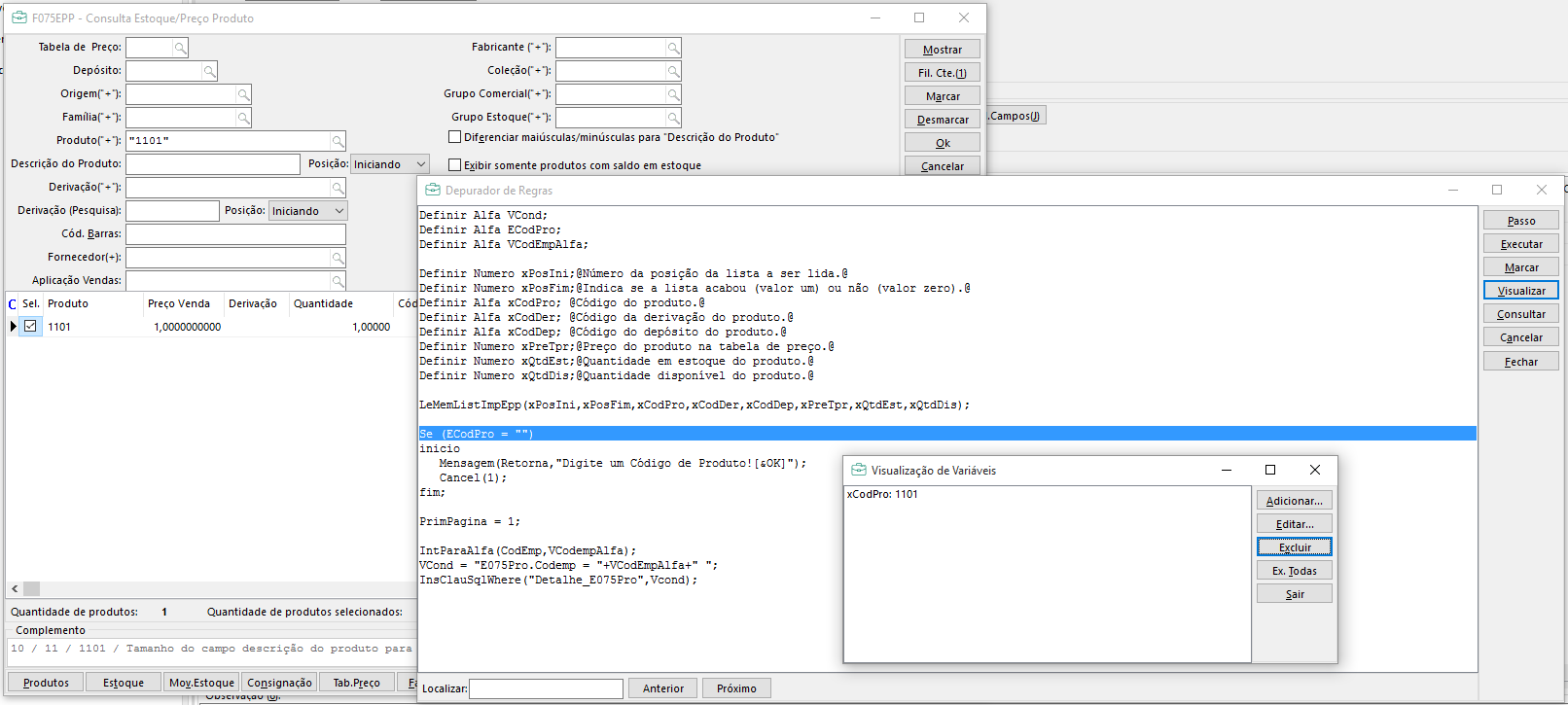 Exemplo: LeMemListImpEpp(PosMemList, FimMemList, FCodPro, FCodDer, FCodDep, FPreTpr, FQtdEst, FQtdDis);