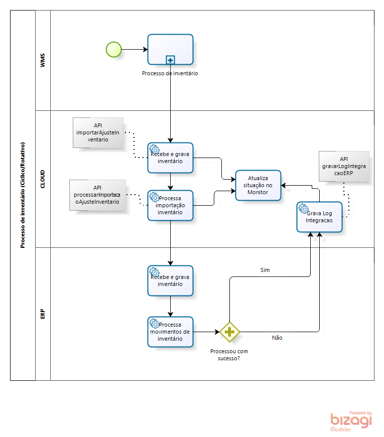 - Quanto ao processo de inventário no WMS, verifique o seu funcionamento de acordo com o integrado: