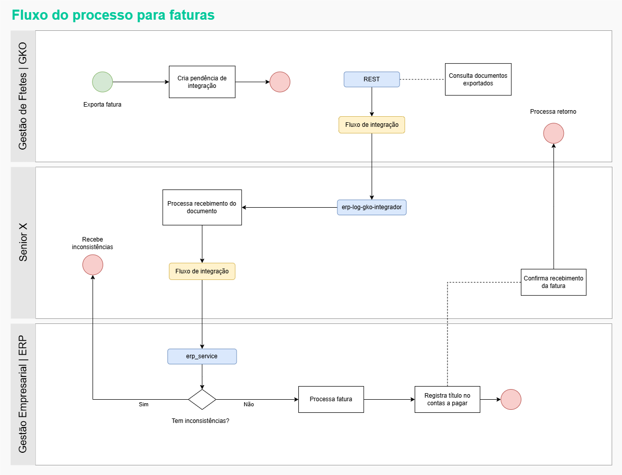 Isso ocorre porque a fatura exportada pelo GKO equivale ao título do Contas a Pagar que seria criado no ERP. Se o título for gerado também pelo ERP, e o GKO enviar a fatura, os valores a pagar serão duplicados.