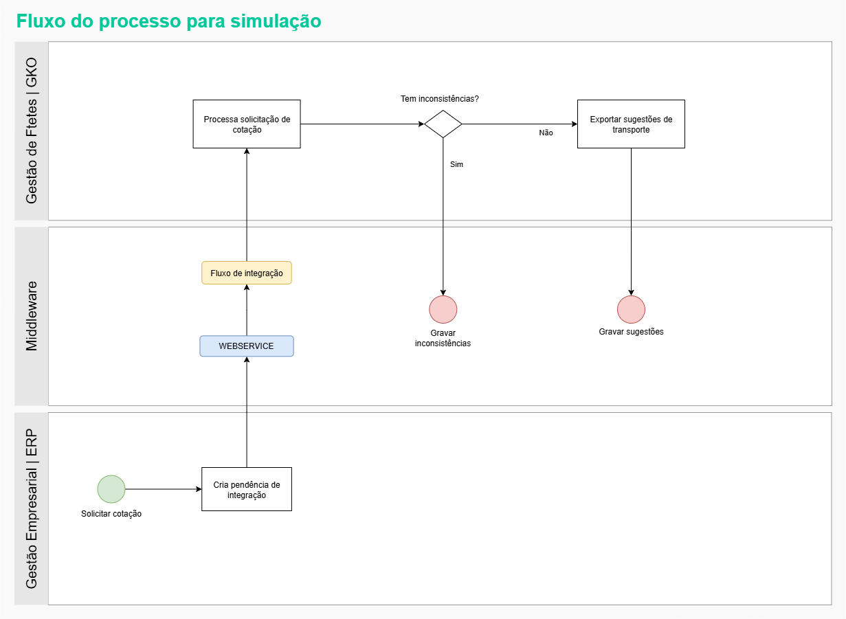 A solicitação de cotação de frete é enviada ao Gestão de Fretes | GKO junto com as informações do pedido de venda. A partir disso, o sistema sugere as melhores opções de transporte, considerando valor e prazo de entrega. Assim, o usuário pode comparar as alternativas e selecionar a transportadora que melhor atende aos critérios do pedido.