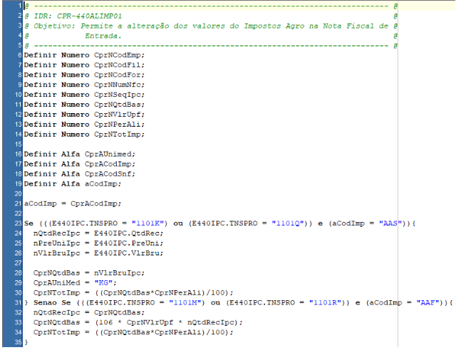 Exemplo simples de regra ligada ao IDR: CPR-440ALIMP0;