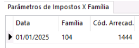 - Código da família do produto: identifica os produtos sobre os quais ocorrerá o cálculo das taxas;