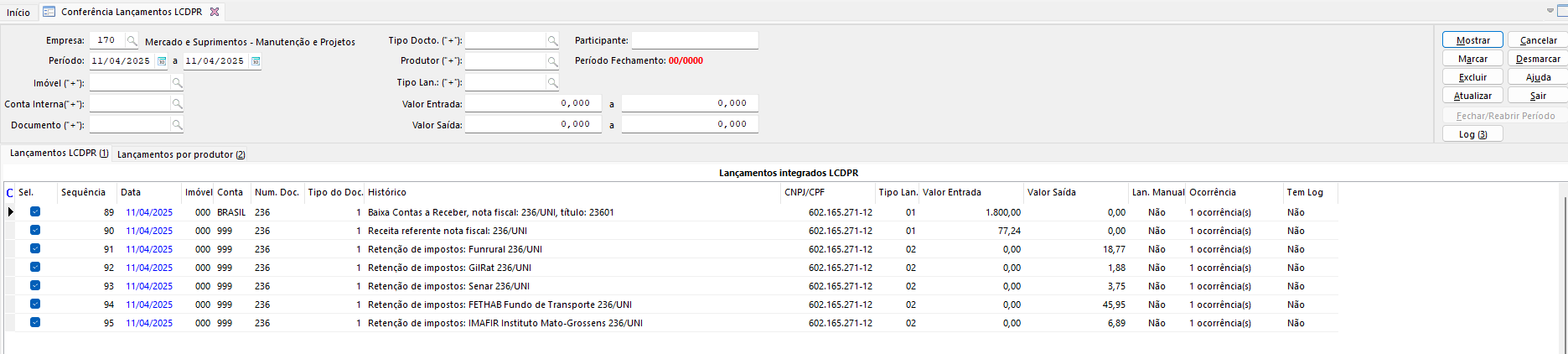 No LCDPR 2.0, há telas que possibilitam a integração, conferência e o lançamento manual de informação para a geração do arquivo do Livro Caixa Digital do Produtor Rural.