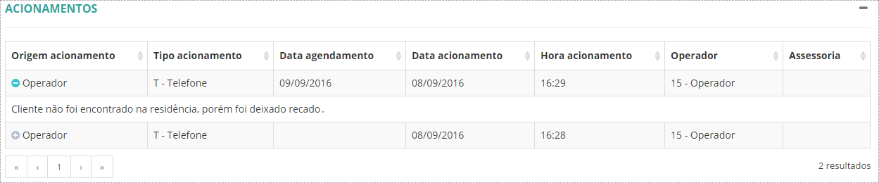 - Todos: são exibidos todos os clientes que estão atribuídos ao operador, independente do prazo que existe para realizar o acionamento. Este filtro é automaticamente selecionado quando a pesquisa por cliente é utilizada.