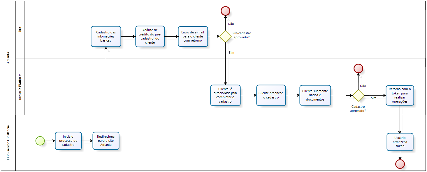 Fluxo dos processo de integração da Senior com a Adianta