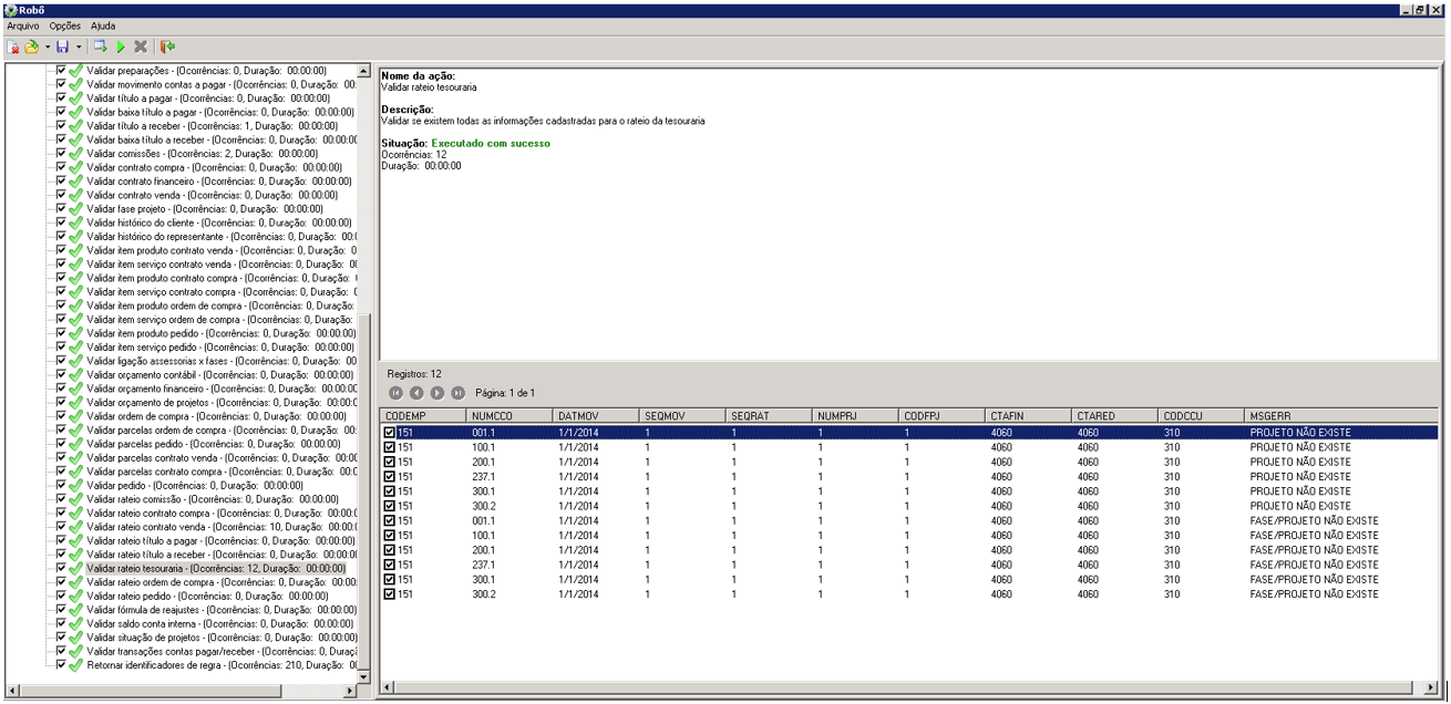 - O Robô pode ser executado quantas vezes forem necessárias, até não retornarem Ocorrências.