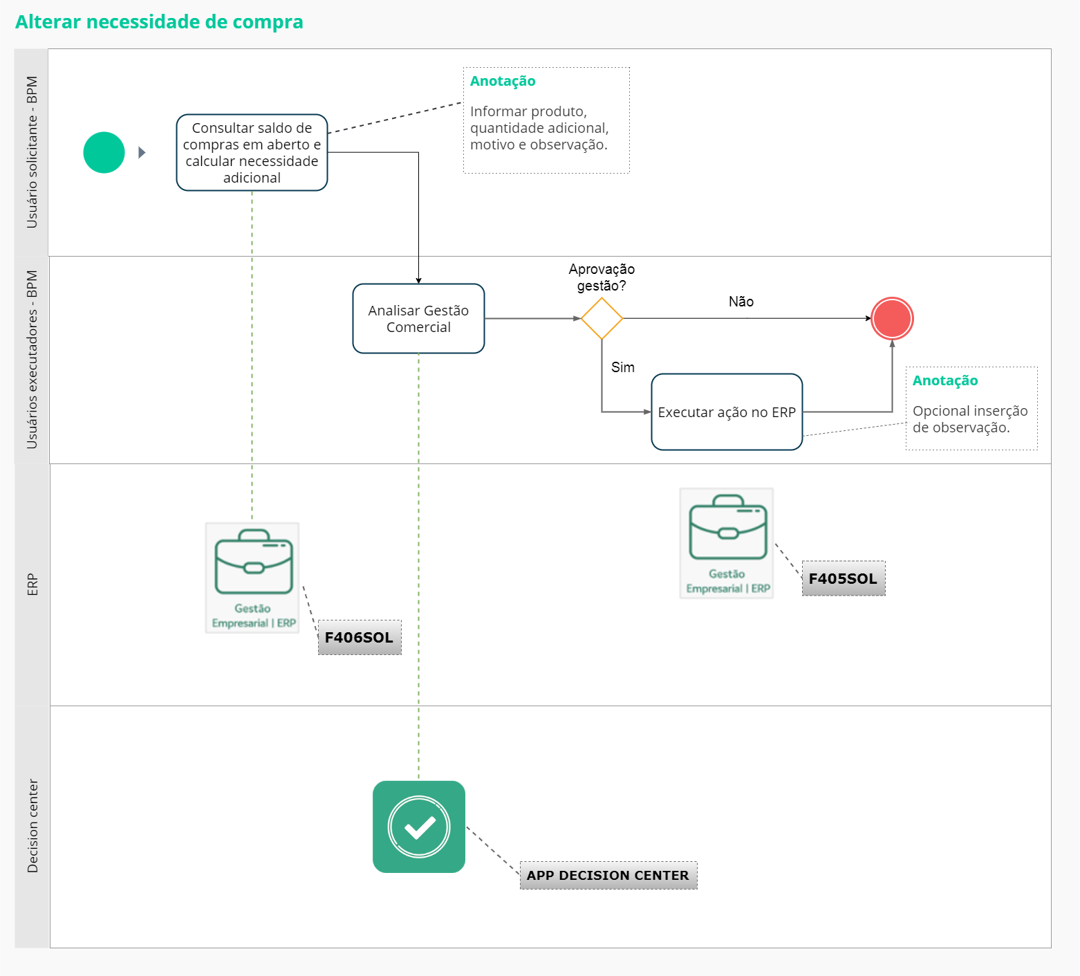 | Cadastro de favorecido | Cadastro de produto | Alterar necessidade de compra | Solicitação de abertura ou fechamento período de lançamentos | Alteração Tabela de Preço de Venda |
