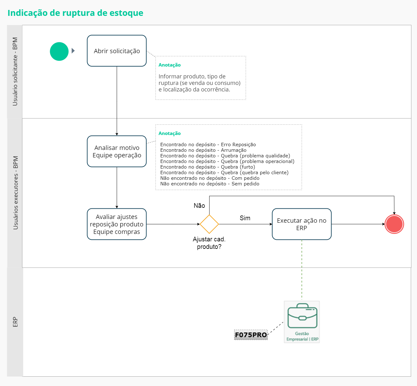 | Solicitação de compra | Indicação de Ruptura de Estoque | |||